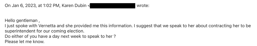 June 8, 2023: Almost immediately, issues seem to have emerged with Nuriddin’s communications with council and the community. Nurridin was directed by Krokoff not to discuss any “business related to your contract” with council members or citizens. Perhaps based on Nurridin’s many cautions about strict process discipline (over many months), Krokoff finally “got religion” around election integrity.