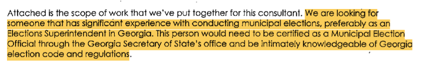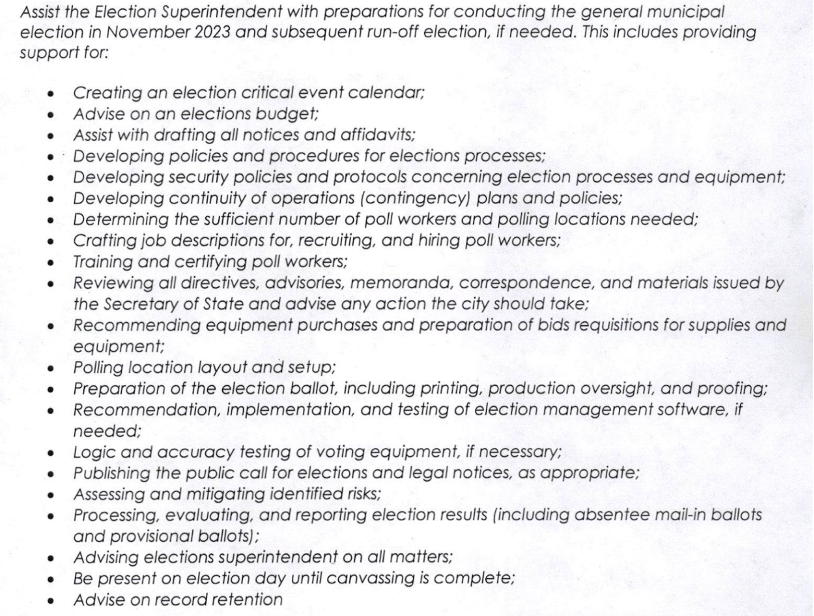 March 28, 2023. The City provides a short summary of the consultant qualifications it is seeking. A key selection criterion is significant experience with conducting municipal elections. Nuriddan does not seem to have this experience.
