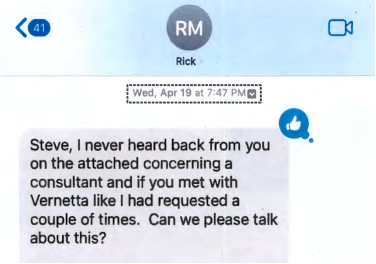 April 14, 2023: Mohrig pesters Krokoff again. Mohrig seems bound and determined for Milton to hire Ms. Nuriddan. However, Krokoff has other thoughts. Krokoff’s two primary election staff have rejected Ms. Nuriddan and he has also reviewed her qualifications and found them wanting. He needs a better solution.