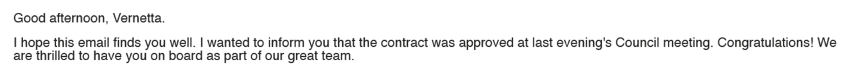 February 13-14, 2023: Nuriddan finally made contact with Assistant City Manager Inglis and City Clerk Lowit. In communications with Inglis, Nuriddan mentions Milton as the model for North Fulton in 2025. Inglis and Lowit both interview Nuriddan and decide she is not suitable for the consulting project.