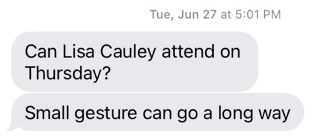 June 27, 2023: Lisa Cauley once again pops up, with Ms Nuriddan seeking to appease Ms. Cauley by allowing her to attend some sort of elections meeting. The perceived need to offer mollifying gestures to Ms. Cauley is troubling.