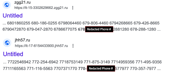 When I googled the two phone numbers used to text/call, half a dozen websites appeared—all with Russian domains. I dared not click on the websites. However, clearly the texter/caller has found a way (probably on the Dark Web) to send anonymous texts and to make anonymous phone calls that likely will be difficult to trace. Following are two examples from my Google searches: