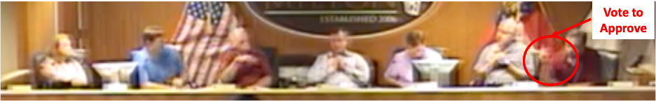 Following is a photo of Mohrig pusillanimously voting for approval of the rezoning. You can also view a video of his vote. Use the following link and advance to 6:20:28